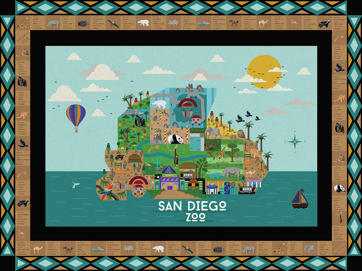 This concept was a take home item for a gift shop. To demonstrate a unique illustration of the experience that families or kids had during there time at the San Diego Zoo.